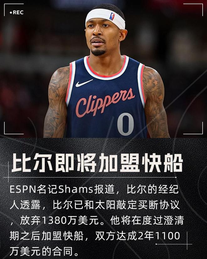 随着快船后场与詹姆斯-哈登搭档的位置空缺,比尔一旦与菲尼克斯太阳达成买断协议,快船显然将成为他的理想去处。
